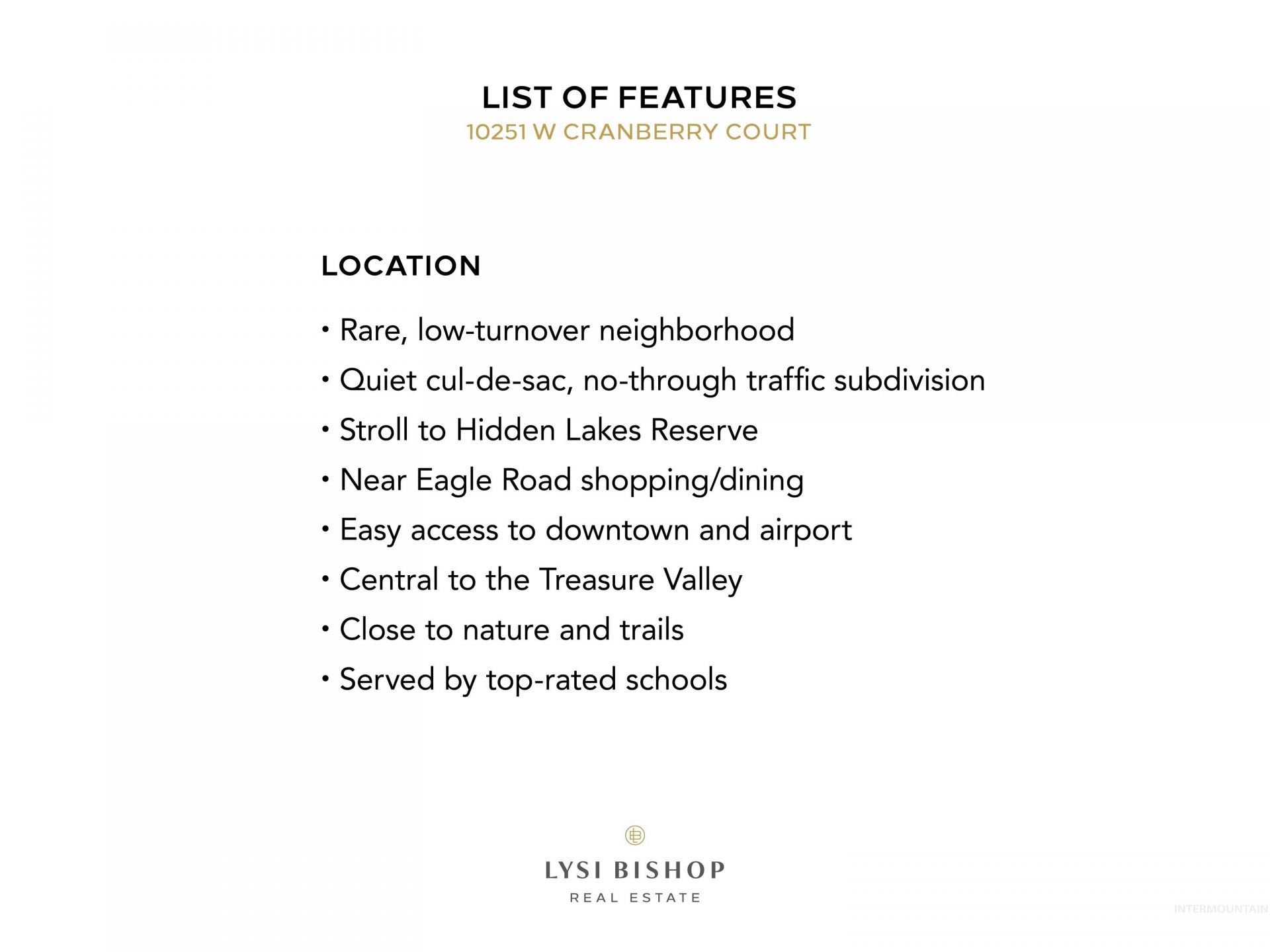 Tucked near the end of a quiet cul-de-sac in Greyloch, this home represents the best of Boise, both in lifestyle & location, offering the rare opportunity to live in one of West Boises most beloved, low-turnover neighborhoods. Thoughtfully cared for & meticulously maintained by its original owner, this distinguished, light-filled home is perfectly poised for its next stewards. With no through-traffic & park-like surroundings, the location delivers invaluable privacy. An easy stroll to Hyatt Hidden Lakes Nature Reserve & central to Downtown, Eagle Road, and the greater Treasure Valley. Inside, ideal southern exposure & expansive picture windows fill the home with abundant natural light, creating a bright, clean, & inviting atmosphere. Generous living areas, abundant storage throughout, a gas fireplace, hardwood floors, a bright kitchen with a bay-window breakfast nook, and an attached 3-car garage with built-in shelving all add to the homes appeal. Recent updates include new exterior paint, new carpet, and newer appliances alongside major system improvements such as HVAC & roof. With ample sun exposure and established planting areas, the yard is ideal for gardening, relaxing, or simply spending time outside. A peaceful setting, desirable neighborhood served by highly-regarded schools, livable floor plan & careful updates ? dont wait to make this exceptional find your new home!