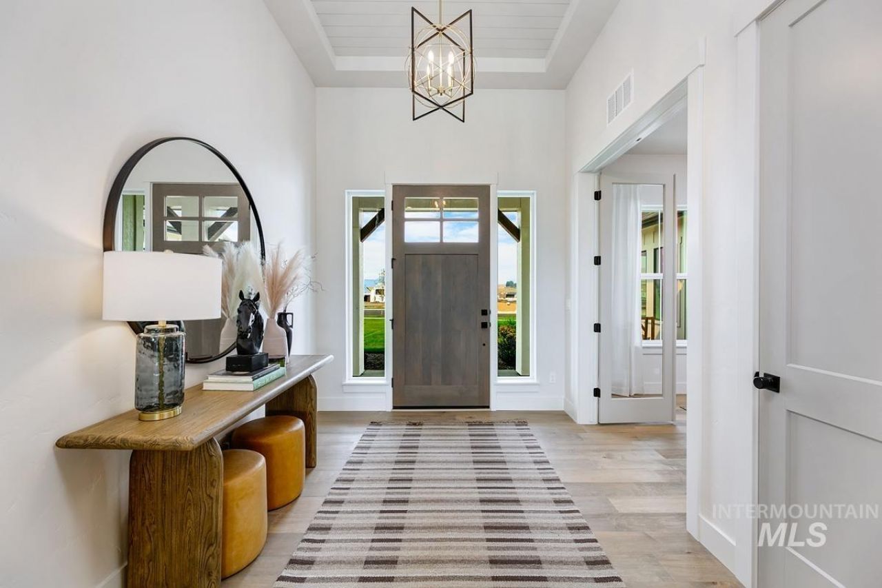 This Amethyst home makes a bold statement with stunning curb appeal and striking design, all set on a spacious almost half-acre homesite with views of the mountains and Stack Rock. The 3-car side-load garage enhances the grand entry beneath a large, covered porch. Step inside to an elongated foyer, with a double-door office to your left, and continue into one of the largest great rooms we offer?featuring towering windows and a statement fireplace. The kitchen is equally impressive, offering sprawling countertops and an oversized pantry. The primary suite includes tall windows overlooking the backyard, along with a soaker tub and a tiled walk-in shower. A guest suite next to the flex room provides a variety of living options to suit your needs. Now open, the Dry Creek Ranch Community Clubhouse spans five manicured acres, featuring sports courts, a pool, and a 8,840 sqft. clubhouse w/ state-of-the-art amenities. Located in the Eagle Foothills minutes from the best Idaho has to offer, including local dining, shopping, and outdoor recreation. Home is to be built. Photos similar. Taxes are not yet assessed and to be determined by Ada County.