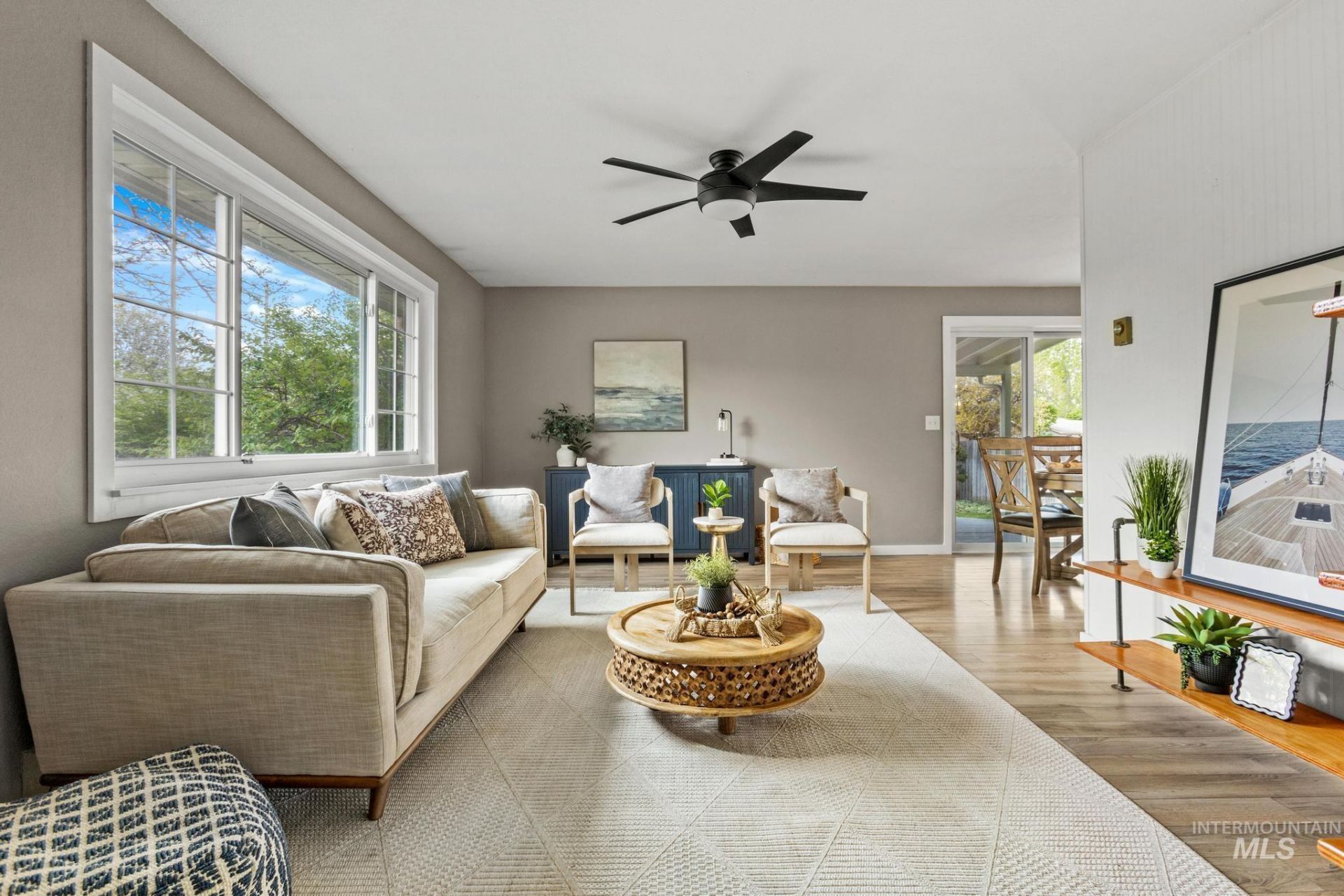 Tucked away in a peaceful Southeast Boise neighborhood, this beautifully updated home presents an exceptional opportunity for first-time buyers or savvy investors. Inside, youll find thoughtful upgrades throughout, including a refreshed kitchen featuring warm hickory cabinetry and a spacious, updated bathroom that blends comfort with modern appeal. Newer flooring and a neutral color palette create a clean, move-in-ready canvas for your personal style. Two generously sized bedrooms with ample closet space offer flexibility for rest, guests, or a work-from-home setup. Step outside to your own private backyard retreat, shaded by mature trees and enhanced with established grapevines and garden space?perfect for relaxing or entertaining. The covered deck extends your living area outdoors and includes hookups for a hot tub, ideal for year-round enjoyment with views toward the foothills. Located within walking distance to Helen B. Lowder Park, this home offers the perfect balance of tranquility and accessibility. Additional highlights include an attached one-car garage and backyard shed for extra storage and hobbies. Just minutes from Micron Technology, downtown Boise, the Boise River Greenbelt, Bown Crossing, and more?this is a rare find in a highly desirable location.