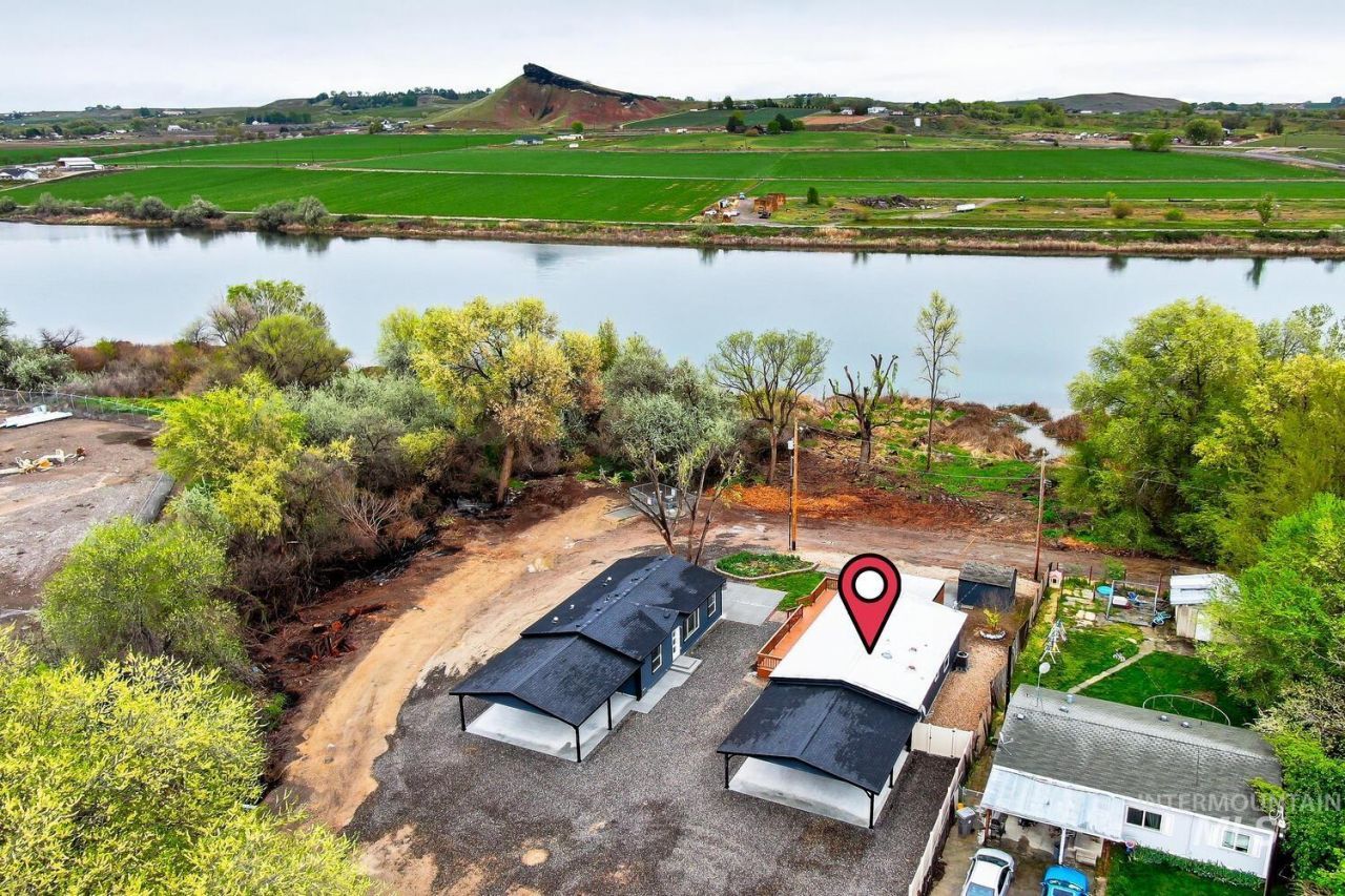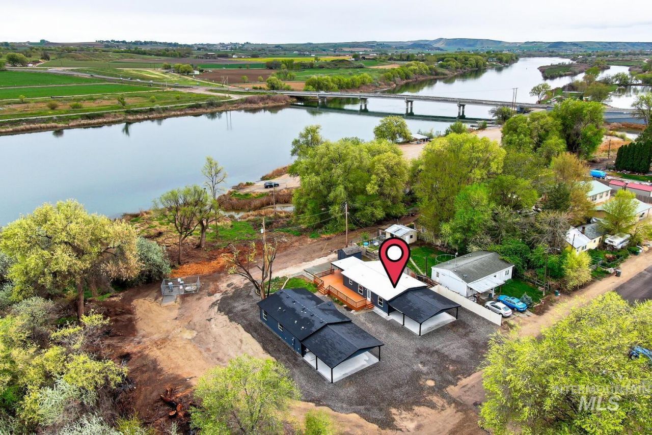 Look no further than your own river front retreat youve always wanted to call home. Located in an awesome country town of Marsing with multitudes of fishing spots including out your back door and minutes to the Snake River Wine Region. This home is in solid condition with metal roof, newer furnace & water heater, brand new windows, interior & exterior paint, LVP flooring & carpet, cabinets, light switches and plumbing trims (exc. kitchen). Walk out the sliding glass doors to a massive wrap around porch with direct views of river and the infamous Lizard Butte. A dream for the indoor/outdoor living space. Home next door is also for sale!