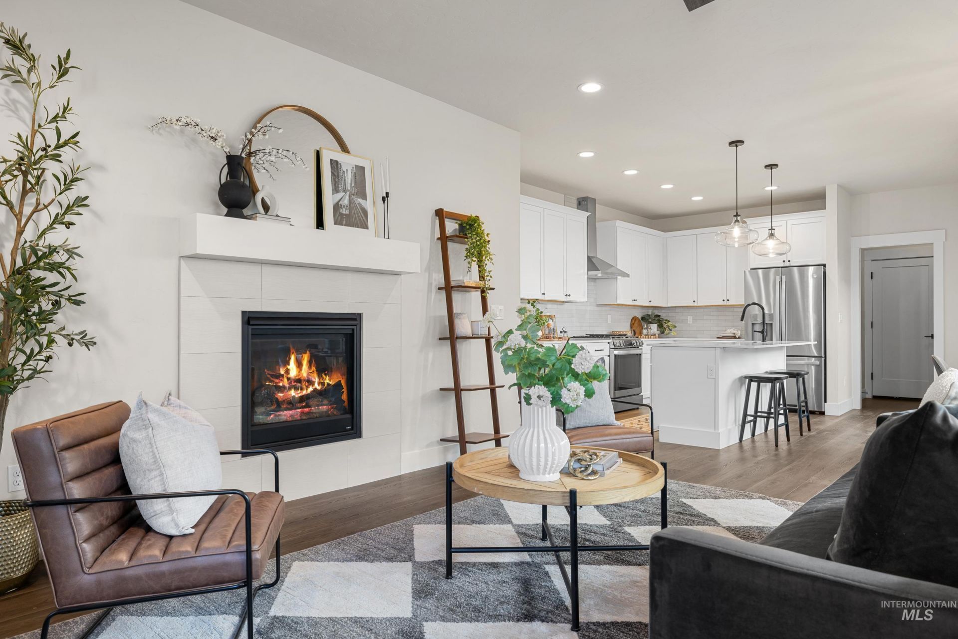 Immaculate & move in ready, this is truly turnkey living in the heart of Eagle, Idaho. 3 bedrooms plus a dedicated office make this home as functional as it is beautiful. Tucked into a quiet, low-maintenance community just minutes from downtown Eagle. Inside, the light-filled layout features 9 ceilings and an open flow anchored by a stunning kitchen with quartz island, soft-close cabinetry, under-cabinet lighting, and designer pendants. Thoughtful details elevate the home: custom molding and accent walls, fully wrapped windows, extended baseboards, and statement sliding door leading to a flexible office or lounge area. The living room centers around a cozy gas fireplace with tile surround and custom window coverings throughout. Generous bedrooms, ample storage, walk in closets, and meticulous care throughout make this home a great investment. Outside, enjoy a private courtyard with gas stub and café lighting. All of it just moments from downtown Eagle, the Boise River Greenbelt, Guerber Park, Eagle Hills Golf Course, and quick access to Highway 55 for weekends in the mountains. Clean, elevated, and effortlessly livable?this is Eagle living done right.