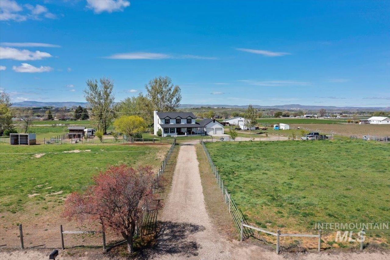 Your Idaho Dream Home awaits! Located in desired Homedale School District, this beautiful small hobby farm home comes with 5 irrigated acres with K-line irrigation pods, while already fenced and prepped for your livestock to start enjoying the farm life! Chicken coops, green pastures, and healthy living is in your destiny with this home! Bring your livestock and horses! Store all your equipment and toys in the 40 X 40 shop with 10 x 40 lean-tos on each side for extra room for hay or animal shelter. Fruit trees throughout the property and garden area ready to start the garden season. Enjoy the home with recent updates inside and out including, gutters, soffit, and insulated vinyl siding, HVAC, irrigation pump, sliding glass door, & induction range to name a few. With 4 large bedrooms, a flex room and open floor plan, this home has space inside and out for plenty of entertaining! Close to Snake River, River Bend Golf course and the new Homedale D & B, it is ready for its new owners!