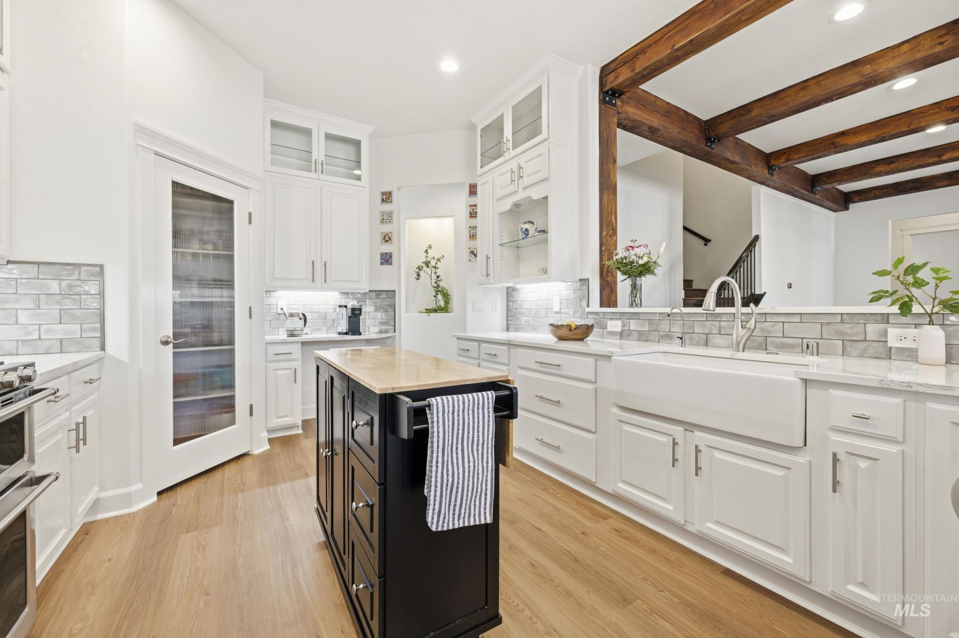 Need Bedrooms? Main floor features tall ceilings with 2 masters, plus 2 more bedrooms and office. (Office currently used as craft room). Primary bedroom has an adjoining 11x10 private room that can be a yoga retreat, additional office or gigantic second closet). Upstairs is another bedroom plus huge media room and full bath. Kitchen and every bathroom have been professionally remodeled. Owners have had many more updates done, including LVP on both levels and high-end carpet. Great room with gorgeous beams and fireplace are ideal for entertaining; just open both sets of French doors to let your gathering extend to the back patio. Enjoy the garden area, fire pit, or ground yourself in the newly planted grass. Store your RV and other toys on the concrete pad. Lochsa Falls has multiple walking paths, a huge park with playground (plus several mini parks) and is a short walk to schools, restaurants, gyms and shopping.