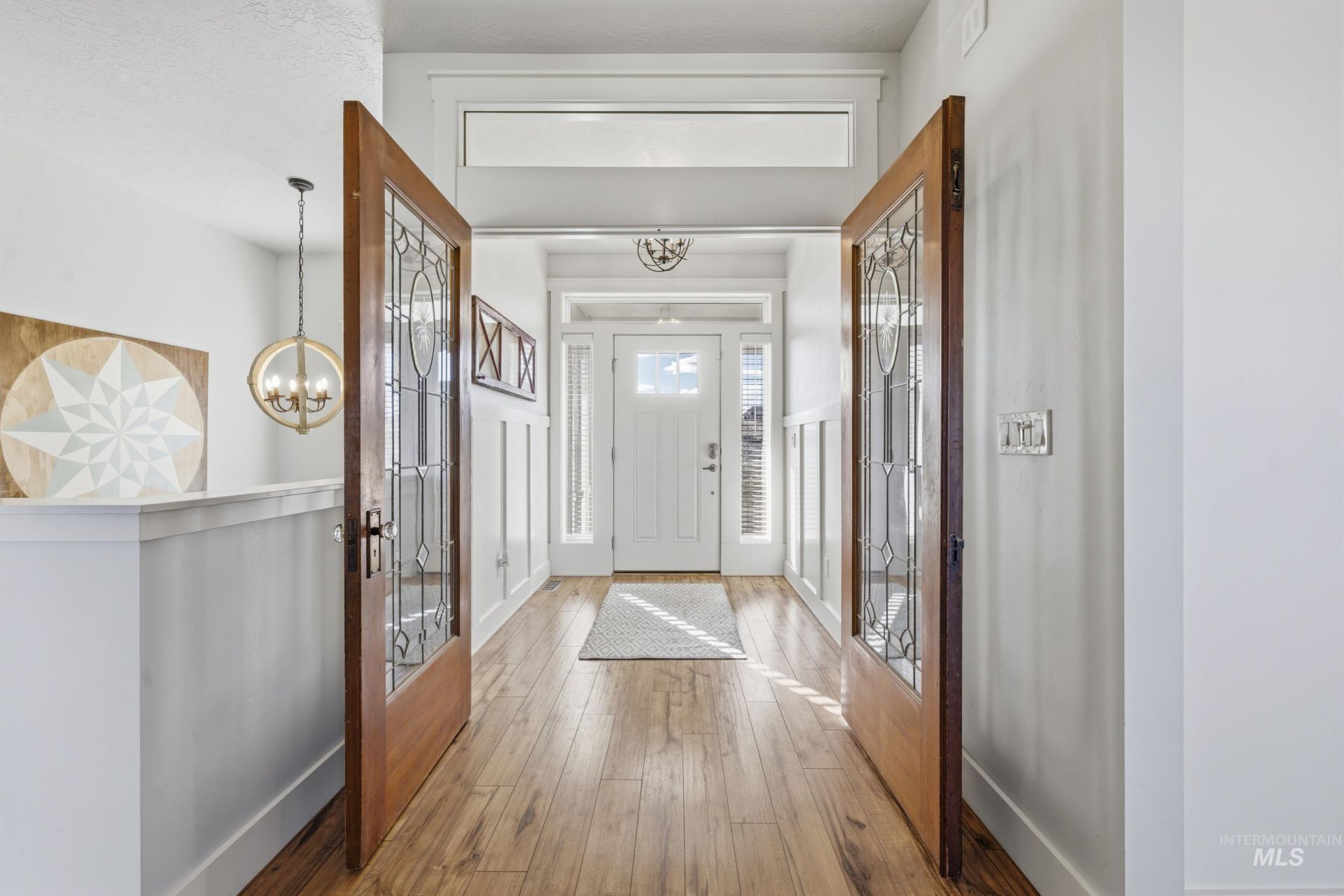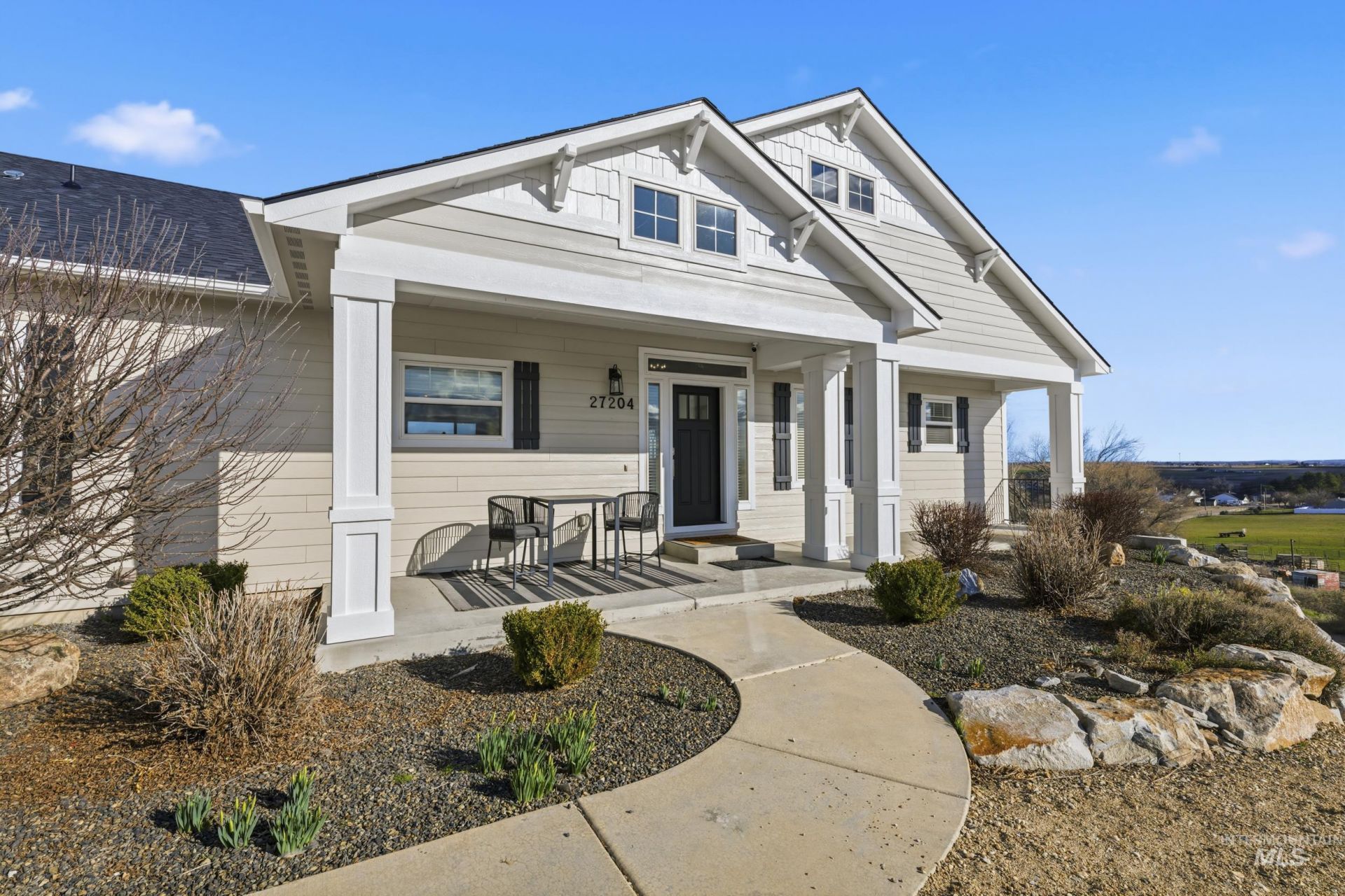 Tucked away on a peaceful 1.86-acre VIEW LOT down a private road w/in Middleton School District, this custom home offers a refined balance of privacy, space, & intentional design, framed by sweeping valley, city, & mountain views. The main level is thoughtfully designed for both comfort & elevated living, featuring warm finishes, a stunning wood burning fireplace w/ custom brick & mantel, & a beautifully appointed kitchen w/ quartz countertops, S.S. appliances, double oven, & whole home surround sound extending seamlessly through both interior & outdoor living spaces. A main level primary suite provides the ease of single level living. The walkout daylight basement offers 3 additional bedrooms & a spacious, versatile workspace ideal for projects, hobbies, or storage. Outdoor living is equally compelling, w/ an expansive Trex deck positioned to capture the views & a fire pit area perfect for evenings under open Idaho skies. Additional features include a laundry room w/ a built-in mud bench, a garage w/ a finished storage room for versatile, year-round use, a dedicated work area, & is backup home generator ready. Fresh exterior paint & a brand-new roof provide added value/peace of mind. Garden boxes & a charming chicken coop enhance the propertys lifestyle appeal. This is Idaho living at its best, offering space to breathe, room to gather, & the convenience of being close to town.