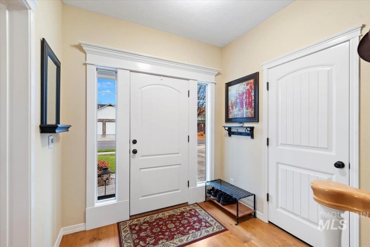 Beautifully positioned in the heart of Eagle, this refined 5-bedroom, 2.5-bath residence blends timeless elegance with everyday comfort. Just moments from Eagles premier dining, shopping, and amenities, the home showcases a grand open-concept kitchen and dining space designed to impress. Chiseled-edge granite countertops, rich hardwood flooring, and custom cabinetry anchor the space, creating an ideal setting for both intimate evenings and upscale entertaining. Enjoy tranquil views and enhanced privacy with no rear neighbors, while scenic community walking paths and a new bike park and sports complex lie just beyond the backyard. The main level features a comfortable living room, an inviting sitting room that can double as a private office, and a formal dining room?ideal for everyday living and entertaining. Upstairs, a spacious landing leads to generously appointed bedrooms and an oversized, thoughtfully designed laundry room. A versatile fifth bedroom provides flexibility for a bonus room, executive office, fitness studio, or media retreat. Completing the home is an exceptional 5-car garage, ideal for car enthusiasts, recreational toys, or additional storage. This distinguished home delivers luxury, versatility, and a coveted Eagle lifestyle?an opportunity not to be missed.