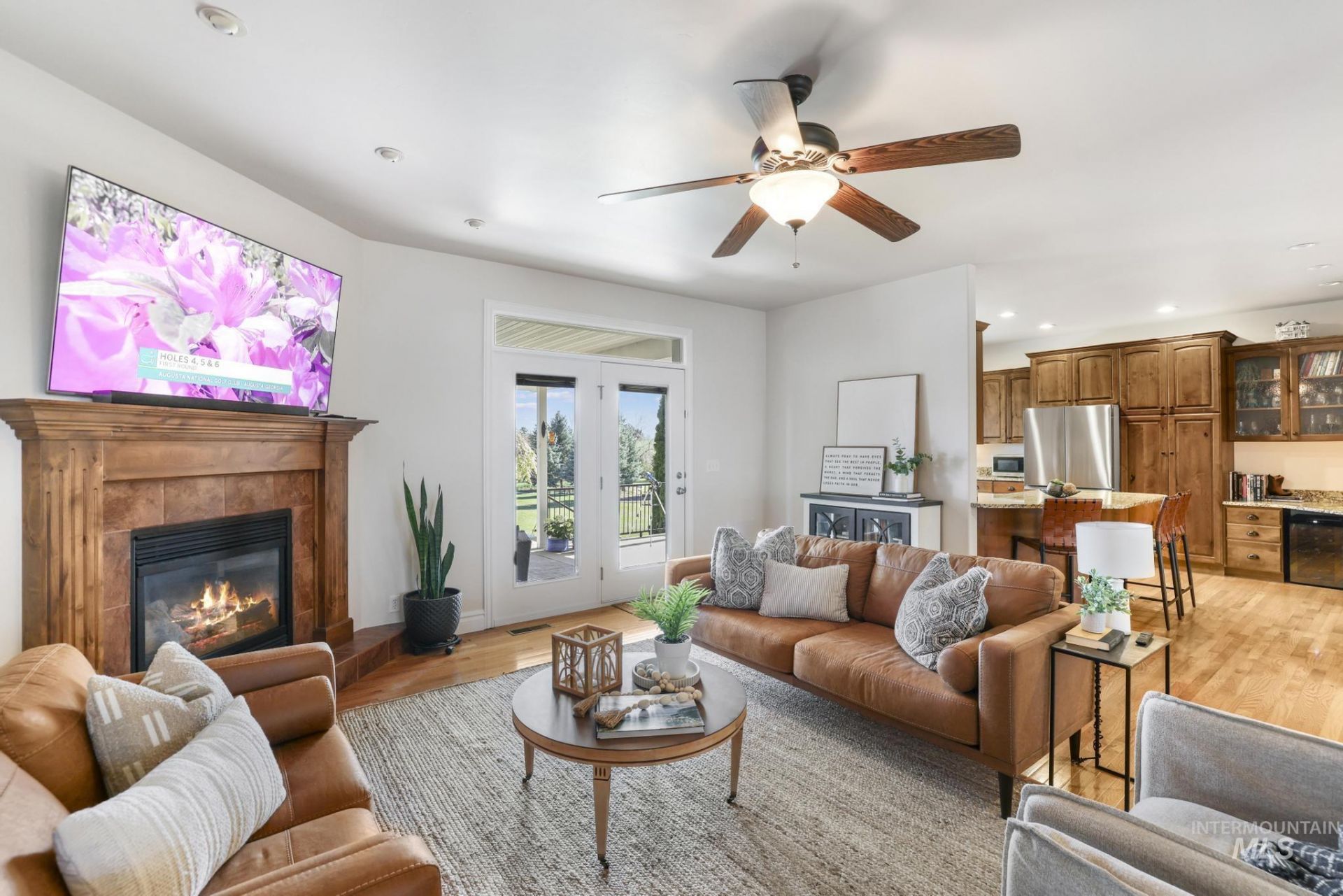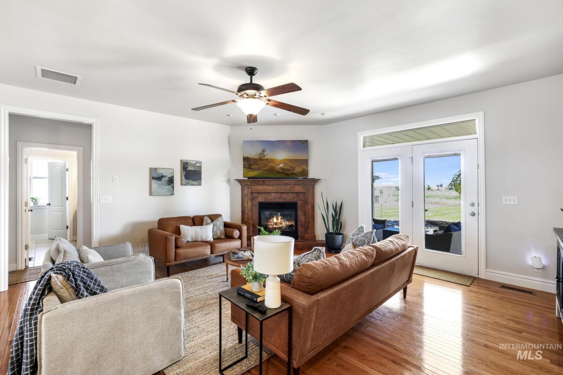 Privacy and space inside and out on 1.57 acres. This south-facing 4,238 sq ft single level home with daylight basement offers flexible living with 5 bedrooms, 3 baths, and a versatile flex room. The main level features hardwood floors, granite countertops, gas range, and a cozy gas fireplace, while the lower level includes a wood pellet stove and bright walk-out basement with patio access. Expansive windows showcase beautiful backyard views from the main living area.Outdoor living is exceptional with three patio spaces: a 22x19 covered patio, 13x15 trellis patio, and a 20x16 open-air lower patio, perfect for year-round enjoyment. Additional highlights include a 40x36 shop with 14 RV door and 30 amp service, natural gas, no HOA, two laundry rooms, fenced dog run, terraced flower beds, mature landscaping, pressurized irrigation, and a 14x12 garden shed. Gas stub for BBQ and wiring for a hot tub complete the package. This property offers the ideal balance of comfort, functionality, and room to live.