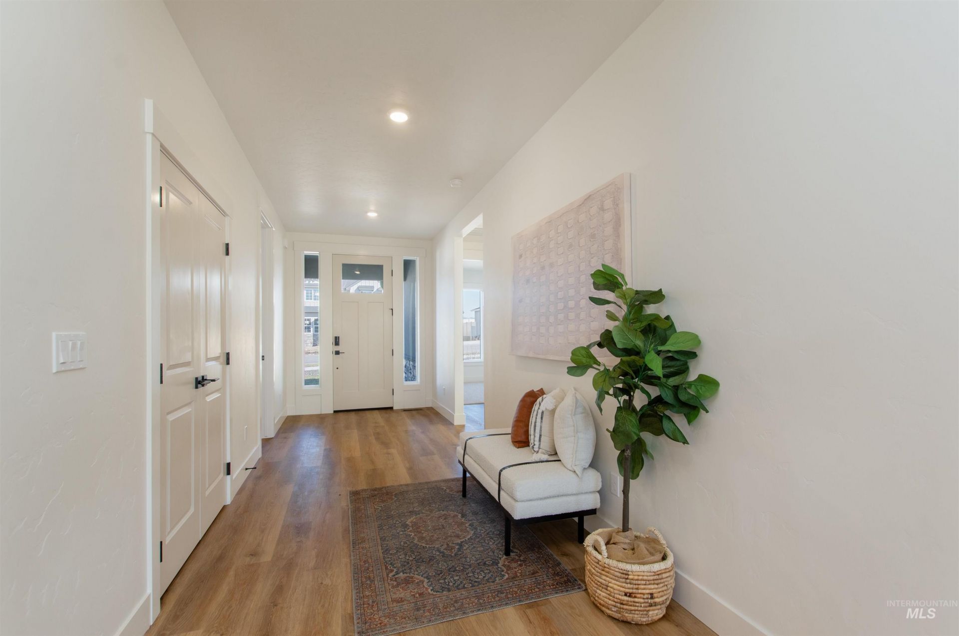 The ALPINE by Bear Homes is a single level home that comes with huge living and dining areas plus an office OR 4th bedroom. The spacious kitchen has stainless steel appliances, a large walk in pantry and all cabinetry comes with soft close hinges and dovetail cabinet drawers. The great room offers ample entertaining space that will allow guests to mingle. Gorgeous Master bath w/ walk in tile shower and convenient pass through to the laundry room. Spacious fully covered patio to sit and enjoy your evenings! Quartz & LVP surfaces throughout. Interior architecture includes 9 foot ceilings and hand textured walls. 3 Car Garage. The community features scenic walking paths and open common areas for outdoor enjoyment. Front and back landscaping included as well as full fencing. Located just minutes from Micron and all the recreational opportunities and amenities of East Boise like Lucky Peak, the Greenbelt, hiking trails and more. Upcoming amenities include: soccer fields, playgrounds, basketball and pickleball courts, a pool, and a community center. Annual conservation fee of $60.