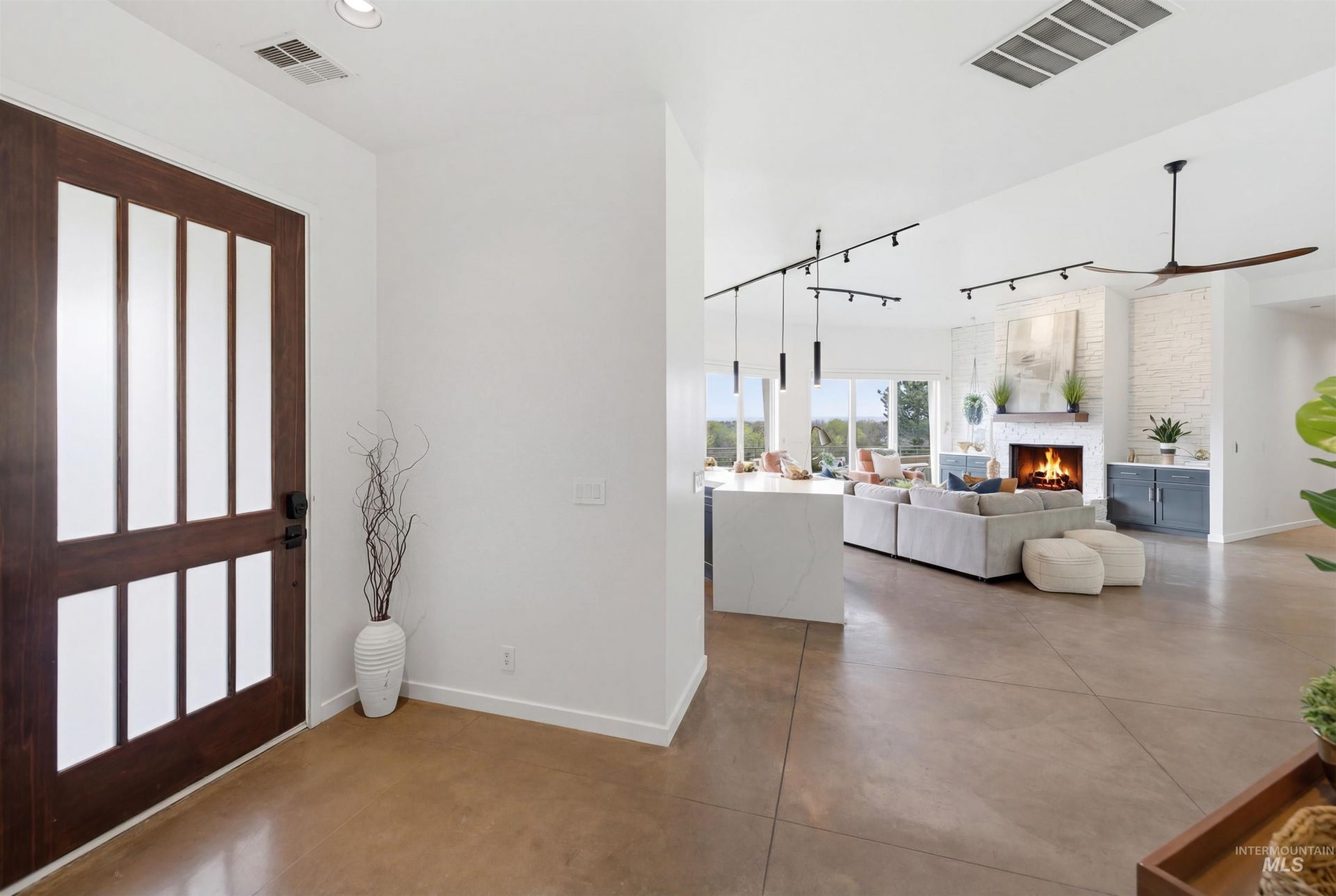 Perched gracefully on a hillside in Boises foothills, this exceptional 4,700sqft steel-frame residence offers a rare blend of privacy, luxury, and breathtaking scenery?just 10 minutes from downtown. Overlooking Quail Hollow Golf Course, the property captures sweeping 360-degree views of the rolling foothills and the Boise skyline, truly unforgettable setting. Designed with multigenerational living in mind, the main level features a serene primary suite complete with expansive bay windows framing stunning city views, a spa-inspired bathroom, and a luxurious steam shower. Two additional bedrooms connected by a Jack-and-Jill bathroom provide both comfort and functionality. The heart of the home showcases a modern kitchen, living room, and dining area, all anchored by concrete floors with radiant heat for year-round comfort. The daylight basement expands the living space, offering an additional family room with a wet bar, kids playroom, craft room, laundry room, home gym, and two more bedrooms. Set on 4.5 acres, this one-of-a-kind property delivers the perfect balance of seclusion and convenience?less than a mile from shopping, parks, and hiking trails. Outside, enjoy lush landscaping with mature fruit trees, garden spaces, and wide-open areas to relax or entertain. A spacious 4car garage, solar panels, and no HOA complete this irreplaceable foothills retreat.