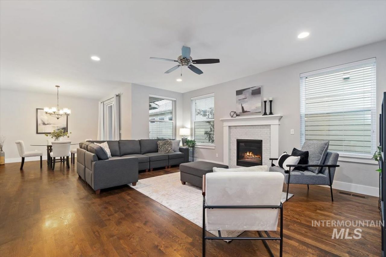 Discover refined living in this charming home situated in the coveted Dallas Harris Neighborhood. Elegant hardwood floors flow throughout main level, leading to a chef-inspired kitchen with a remarkable island. Vast great-room and gracious eating space which leads to a covered patio and a fully fenced yard. The large master suite boasts a relaxing spa-like shower and spacious walk-in closet. Upper floor includes 2 large additional bedrooms, full bath, and bonus area. With a main-level 4th bedroom and a 3-car garage, the home offers flexibility and comfort. Open space across the street offers a feeling of distance and privacy. Community pool and neighborhood walking paths. Whether you are taking in the views off the front elevated deck, or relaxing on the back covered patio, this home offers a combination of natural beauty & turn-key low maintenance living. Enjoy quick access to foothill trailheads, Bown crossing, Boise River, Shakespeare in the Park, and Greenbelt. Highly rated school district which includes East Jr & Timberline High.