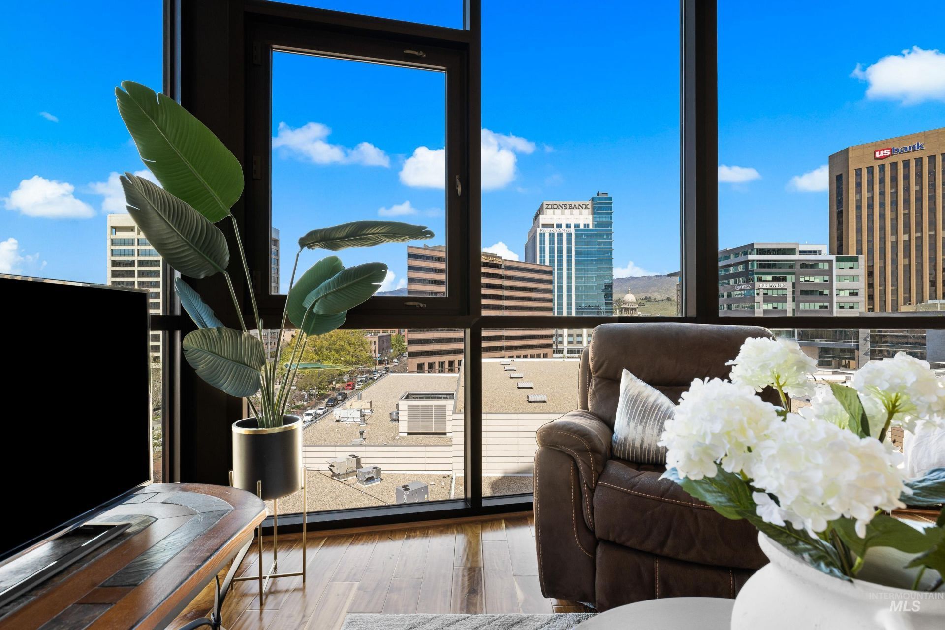 Seven floors above the energy of downtown Boise, this studio at Aspen Lofts drops you right into the heart of downtown Boise. The best of downtown is right outside your door: 8th Street, top restaurants, shopping, the Greenbelt, and weekend farmers markets. The unit itself is beautifully maintained with abundant natural light, a smart open layout that makes the most of every square foot, sleek kitchen finishes, modern appliances, and a contemporary bathroom with clean finishes. Thoughtful storage throughout keeps the space open and functional. Secure building access and low-maintenance living make this a perfect fit for full-time residents, investors, or anyone craving a true lock-and-leave lifestyle in the heart of Boise. HOA covers water, sewer, trash, building security, and high-speed internet. Owners are responsible for their own router and electricity. Building amenities include a common area deck, a 9th floor pet relief area for small animals, and caged bike storage in the garage.